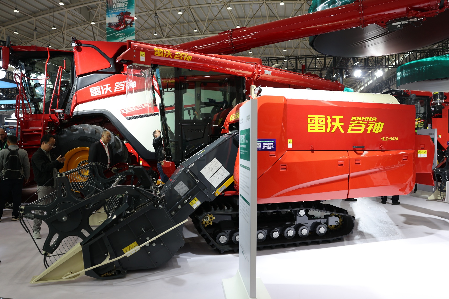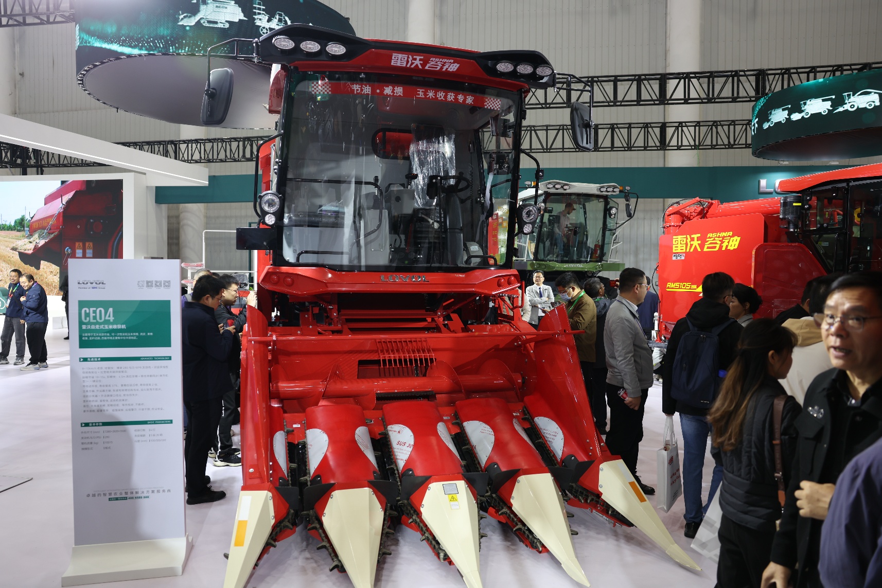 收获机械展区同样亮点纷呈,潍柴雷沃智慧农业不仅带来了雷沃谷神CE04玉米机、雷沃谷神RG系列履带机等明星产品,国产最大喂入量小麦机雷沃谷神GS8239收获机以23公斤/秒的大喂入量打破国外技术垄断,能够实现效率优先、粮食质量优先等自适应调控,最大限度的减损增效,使我国大喂入量谷物联合收割机成功跻身国际先进水平。
